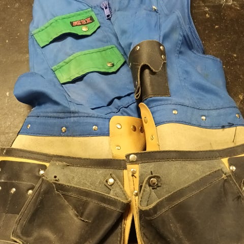 Bockmann huomio työkaluliivi riipputaskuilla. Rintataskussa myös paikka työmaa kortille. Koko 52. Vain julkinen tapaaminen Tampere (Tammela/keskusta)
