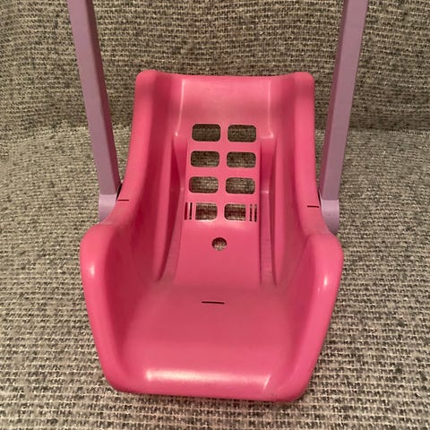 Kuvassa näkyvät nukke, vauva ja vaunut
