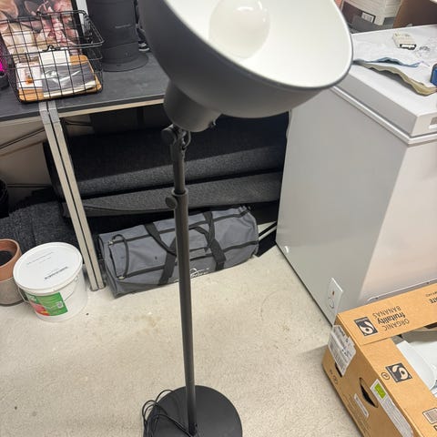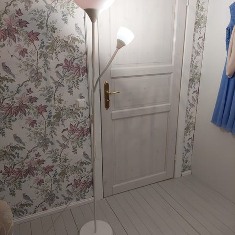 Hyväkuntoinen jalkalamppu. Lampun korkeus 145cm