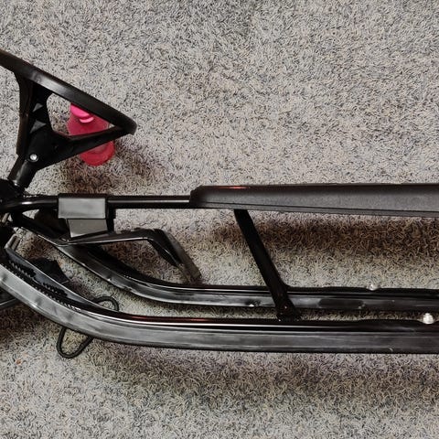 Seuraavalle mäenlaskijalle kelpo rattikelkka, jossa on hyvin toimivat jarrut ja ehjä vetonaru. Nouto Espoosta.