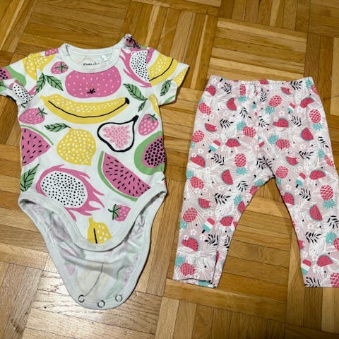 Siistikuntoiset body ja housut. Pesty hajusteettomalla pesuaineella. Yhteishinta 9€