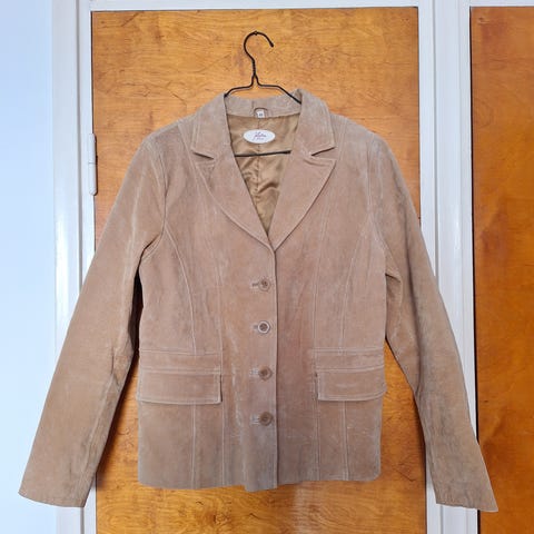 Jofaman naisten mokkanahkatakki koossa 42. Sopii M ja L-kokoiselle. Itse olen L-kokoisena tätä käyttänyt. Siisti kunto, toki jotakin käytön jälkeä havaittavissa. Mielestäni rustiikki ilme sopii takkiin, eli vain paranee vanhetessaan.