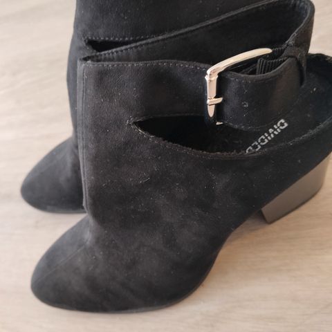 H&M Divided korkokengät, koko 38, musta väri. Kengissä on nyöritys ja paksu korko. Päällinen kangasta, pohja kumia. Kumiosuus on useasta kohdasta kulunut