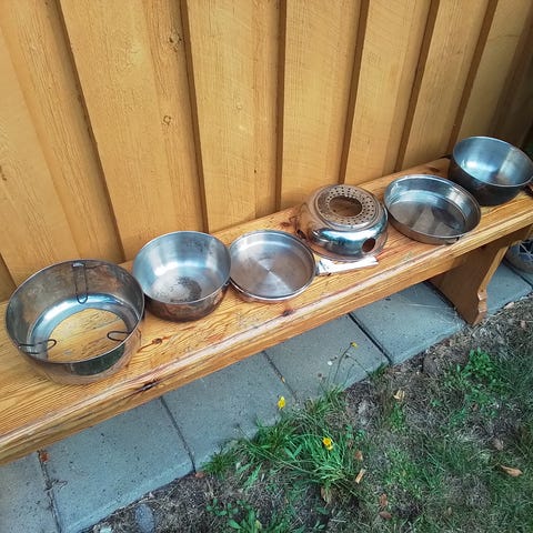 Retkikeitin astioita, kenttäpakki ja pieni kattila. Kaikki kerrlla yht.50e. Voin myös lähettää.