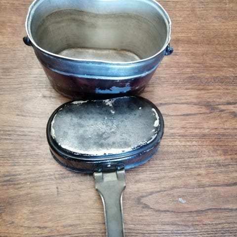 Retkikeitin astioita, kenttäpakki, pieni kattila ja u.s army leili vuoratussa kantolaukussa. Kaikki kerrlla yht.50e. Voin myös lähettää.