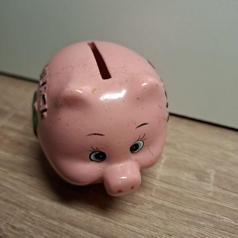 Säästöpossu keramiikka keltainen sininen punainen