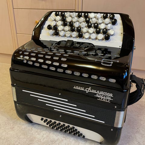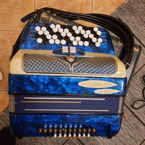 2- äänikertainen, kaunis ääninen lasten harmonikka, joka soveltuu soiton harjoittelun aloittamiseen, menee noin 4-10 vuotiaalle. Hyvät hihnat ja selkäremmi. Herkkä sointinen, laadukas italialainen soitin.