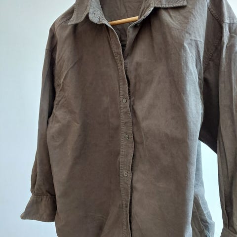 Vihreään vivahtava reilunkokoinen vakosamettipaita