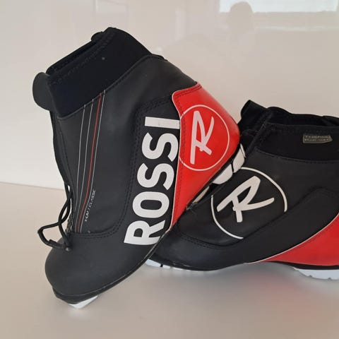AI: Salomon hiihtomono, koko 34. Musta-valkoinen väri, sisävuori pehmeää materiaalia. Monot soveltuvat murtomaahiihtoon.