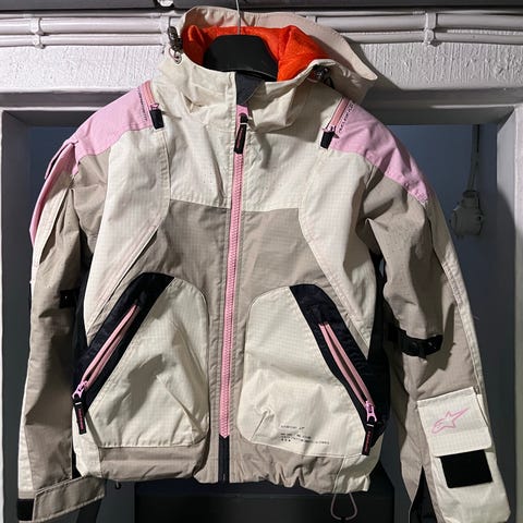 Huippukuntoinen katseiden kerääjä, Alpinestars Stella Gunner ajotakki. Pidetty päällä muutamia kertoja. Irroitettava sisävuori, hyvät taskut ja ennenkaikkea makee rotsi. Koko L.
