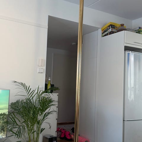 Sopii "normaaliin" 2,5m huonekorkeuteen, setissä myös lisäpaloja joilla voi madaltaa ja pidentää tankoa.