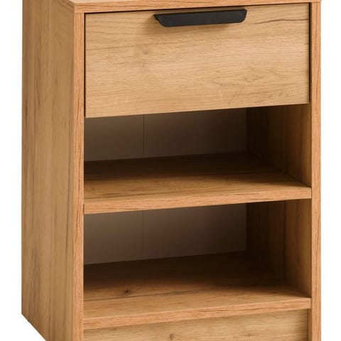 Hyväkuntoinen koivu puinen yöpöytä kaksi laatikkoa, pieni lasihylly.