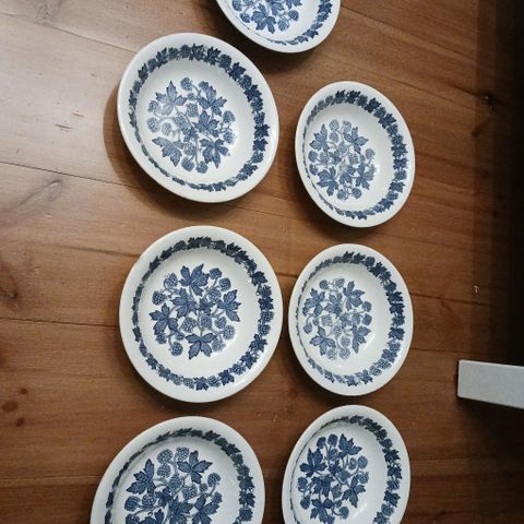 Lautaset olleet arkikäytössä. Kunto on hyvä, lasitus on täysin ehjä, mutta pinnassa näkyy käytön jälkiä.