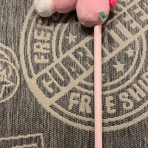 Aiemmissa seikkailuiden tiimellyksessä keppi on päädystä kulunut (kuva) mutta muuten heppa on ok-kunnossa.