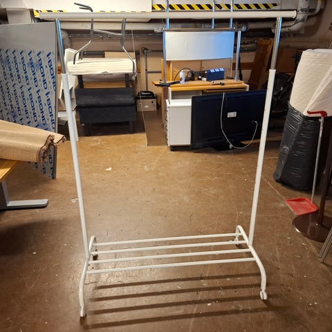 IKEA vaaterekki valkoisella värillä. Rakenne soveltuu vaatteiden ripustamiseen ja säilyttämiseen. Sopii erilaisiin sisätiloihin vaatteiden järjestämiseen.