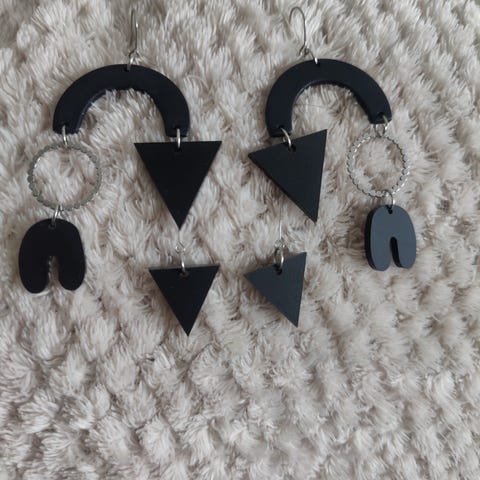 Kaksipuoleiset korvikset, kotimaista käsityötä. Mitat noin 5x2 cm, ei rasiaa. Mieluiten nouto, mutta kulkeutuu tarvittaessa kuusaan ja kanta-kouvolan alueella.