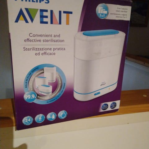 Myydään Philips Avent höyrysterilointilaite. Alhaalla tilaa kuudelle isolle tuttipullolle ja yläkorissa steriloit tutit ja muut pikkutavarat. Kaikki osat tallessa ja hyvässä käyttökunnossa. Mielellään nouto Palokasta.