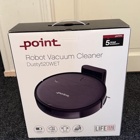 Point robotti-imuri. Ei ole itsellä ollut käytössä muuta kuin imuroinnilla pari kertaa kun ei ole ollutkaan tarvetta. Alkuperäinen pakkaus ja kaikki alkuperäisesti mukana tulevat osat mukaan. Meillä 70neliötä ja riittänyt akku koko asuntoon.
