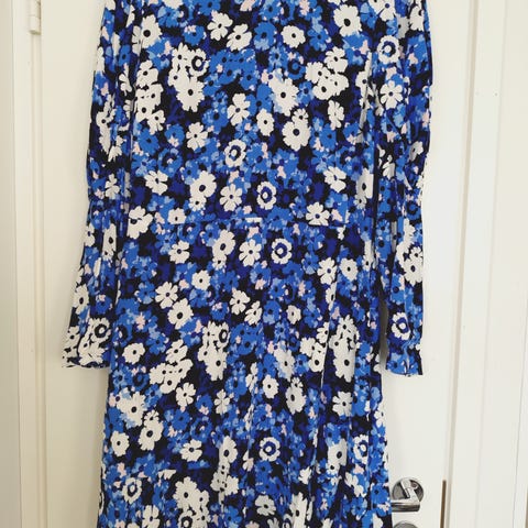 Kukkamekko, takana vetoketju, mukana vyötärön korkoinen bleiseri.