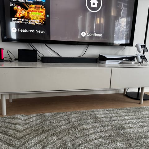Myyntiin tilanpuutteen vuoksi räkkipöytä vetolastikoilla ja kytkimillä varustetulla jatkojohdolla.