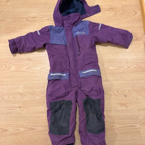 Hyvässä kunnossa, vaikka kaksi talvea ollut käytössä. Lahkeiden pidennykset avattu, joten enempi 98 kokoiselle sopiva. Kuvissa näkyy käytönjäljet. Toisessa polvessa pieni naarmu ja hiukan pehmentymää, mutta hyvässä kunnossa edelleen. Nämä Didriksonin haalarit ovat olleet meidän hoikalle ja pitkälle pojalle parhaiten istuvia ja lämpimiä! Suosittelen.