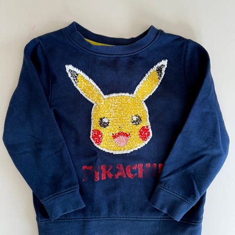 Pokemon aiheinen college koossa 98/104. Muutoin siisti, kuvatessa yhden tahran hoksasin. Kynä osoittaa suuntaa. En ole kokeillut poistaa. Miedosti hajustettu pesuaine käytössä, entinen koiratalous☺️