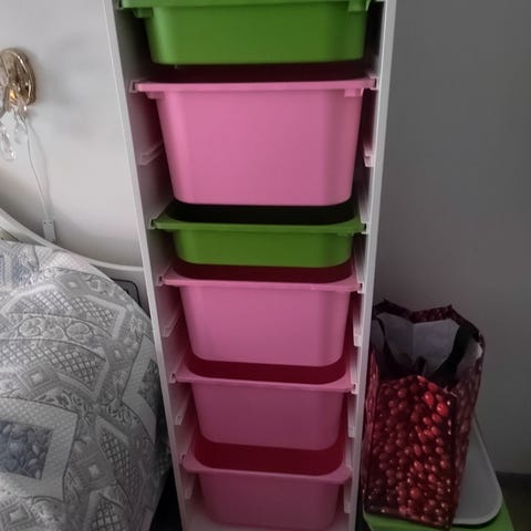 Myynnissä kaksi Ikea Trofast hyllyä. Vajaa 2v. vanhat. Siistit, isommassa muutamia tahroja päällä, kuvat niistä.