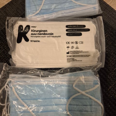 Pakkaukset sisältää maskeja eri väreissä.