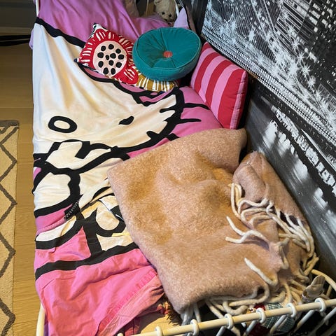 Kasattu yhteen ja laitettu takaisin alkuperäiseen pakettinsa eli flat packed.