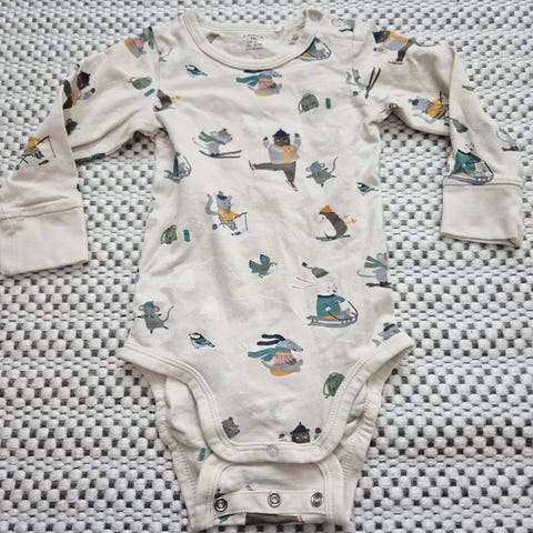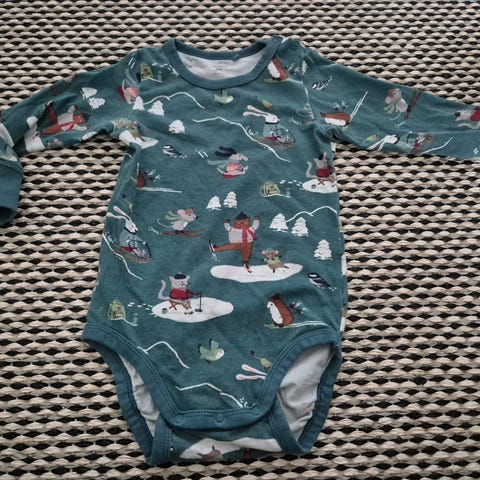 Vaaleanharmaa body, jossa röyhelöinen kaulus 74 cm 🩶