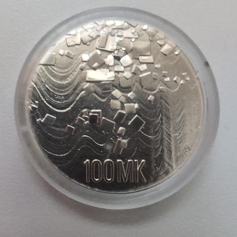 Juhlaraha 100 markkaa kapselissa, Suomen itsenäisyys 75 vuotta 1992. Suunnittelija kuvanveistäjä Erkki Salmela. Hopea 925 ‰, paino 24,0 g, halkaisija 35 mm. Hinta 50 euroa. Kunto kuin uusi, kapselissa. Hieno lahjaidea. Nouto Helsingistä myyjän osoitteesta kuluitta tai postitus ostajan kustannuksella.