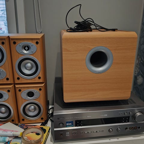 Yamaha vahvistin ja Jamo subbari Peltolassa. Vain nouto.