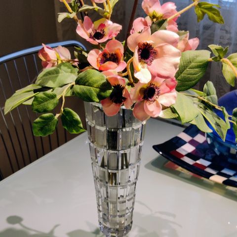 Lisäksi toinen ehjä Riihimäen lasin kristallimaljakko hopeajalalla (813), kaiverrus myös jalassa.
