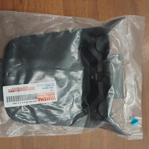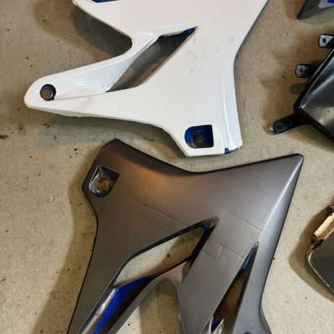 Ohjaustangon katteet mittaristolla, peräkate takakatteiden väliin, pohjakate, bensatankki ja variaattorinkoppa.