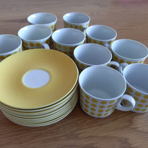 Kruunuleimaisia Arabia POP kahvikuppisettejä.