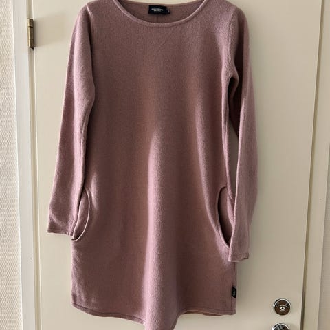 Holebrook neulemekko, 80% villaa, 20% polyamidia. Kai-kai 51 cm, pituus 90 cm, kroppa 110-118 cm, hiha kainalosta 46 cm, olka 40 cm. Hihan leveys ylhäältä alaspäin 34-22-20 cm. Takana keskellä menee reinakuvioraita, helma ja hihansuut kaksinkertaiset ja molemmissa käänteen mittaiset halkiot, pyöreä pääntie joustinneuletta, koko L, tumman sininen.