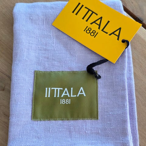 Uusi ja käyttämätön, Iittalan uudella logolla varustettu pellavainen keittiöpyyhe. Väri kaunis keväinen ja raikas vaaleanpunainen.