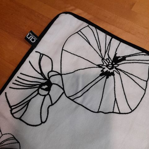 Gant koristetyynynpäällinen, jossa on harmaa, valkoinen ja sininen väritys. Tyynyliinassa on painettu logo ja napitusreuna. Koko 45x 50cm. Muistaakseni kerran käytössä ollut, oikein siistissä kunnossa.