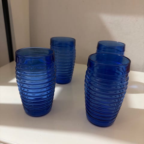 Myydään siniset juomalasit. Hinta 1 € / kpl. Nouto Triplan vierestä ja maksu käteisellä.