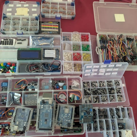 Arduino mikrokontrollereita ja oheistarvikkeita, antureita, lankavastuksia, liittimiä, komponentteja, yms.