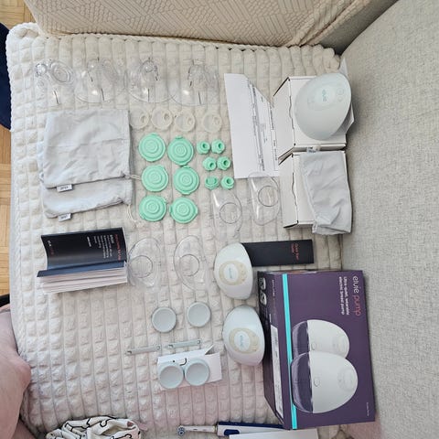 Elvie pump, langaton, sähkökäyttöinen rintapumppu. Hiljainen, huomaamaton ja helppokäyttöinen langaton pumppu. Sisältää kaikki alkuperäiset osat ja alkuperäisen pakkauksen sekä ohjekirjan. Pumppu ostettu uutena 2023 ja käytetty yhden imetyksen aikana ajoittain. Osat ehjiä ja käytetty ohjeistuksen mukaan. Osat pesty välittömästi jokaisen käytön jälkeen sekä keitetty päivittäin ja ovat siistissä kunnossa. Ei pesty astianpesukoneessa, vaikka sekin on ohjeen mukaan mahdollista. Kirkkaissa muoviosissa maitosäiliöissä pohjissa hieman naarmua ulkopinnassa.