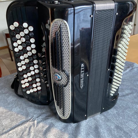 Siistikuntoinen ja hyvin soiva 4äk . harmonikka. Siistit hihnat ja laukku.