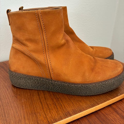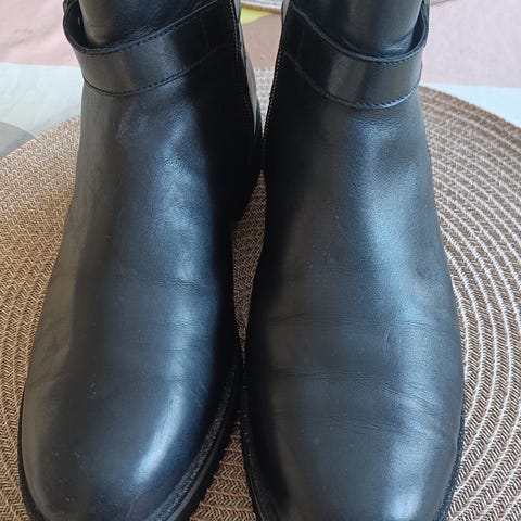 Nahkainen, lämpöisellä vuorella oleva laadukas talvikenkä. Kokomerkintä 6, vastaa kokoa 39.