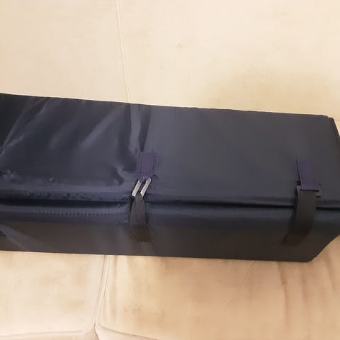 Kuljetuskassin vetoketjusta on vetoklipsu irronnut, mutta vetoketju itsessään toimii.