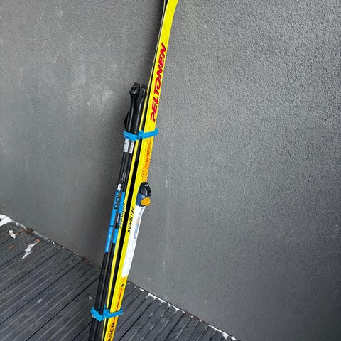 muutaman kerran hiihtoreissulla olleet lasten sukset 140 cm. Merkki: Peltonen