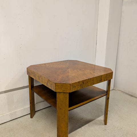 Pöytä on täyspuuta ja erittäin tukeva. Toimii hyvin sohvapöytänä tai sivupöytänä, tai vaikka kotialttarina.