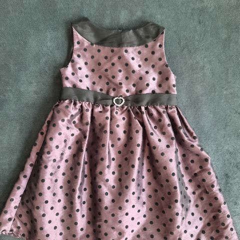 Kuvan siistikuntoinen juhlamekko. Takana vetoketju pukemista helpottamassa. Helmassa vuorikangas, jossa tylliä. Kokolapussa 92cm, mutta sopiva 92/98cm koossa.