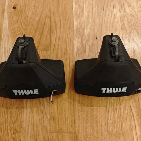 Thule Evo Clamp 710500 kattotelineen jalkasarja, jossa nyt kiinni asennussarja Kit 145101.