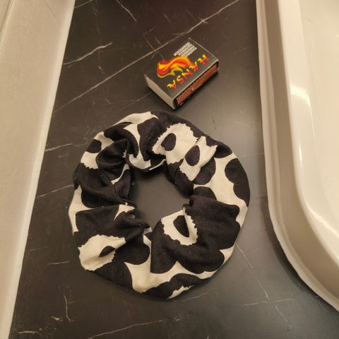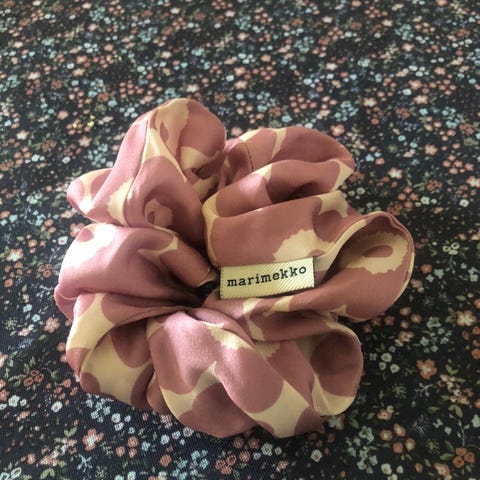 Myydään Marimekko Räsymatto -kankaasta valmistettu DIY hiusdonitsi, jonka halkaisija on 11 cm. Hiusdonitsi kestää erimerkiksi pesun pyykinpesukoneessa.