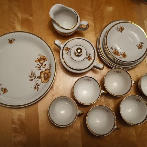 Hakusanat: kupit, kultareunus, kuppi, Paketoitava, muki, Valmistaja, aterin, myrna, tarjoilulautanen, kukkakuvio, keramiikka, suomalainen muotoilu, sokerikko, kermakko, aterimet, astiasto, astiat, kaadin, lautaset, lautanen, teekannu, arabia, arabian, kahvi, design kuppi muki kupit lautanen astiasto kahviastiasto tassi asetti lautaset kupit mukit